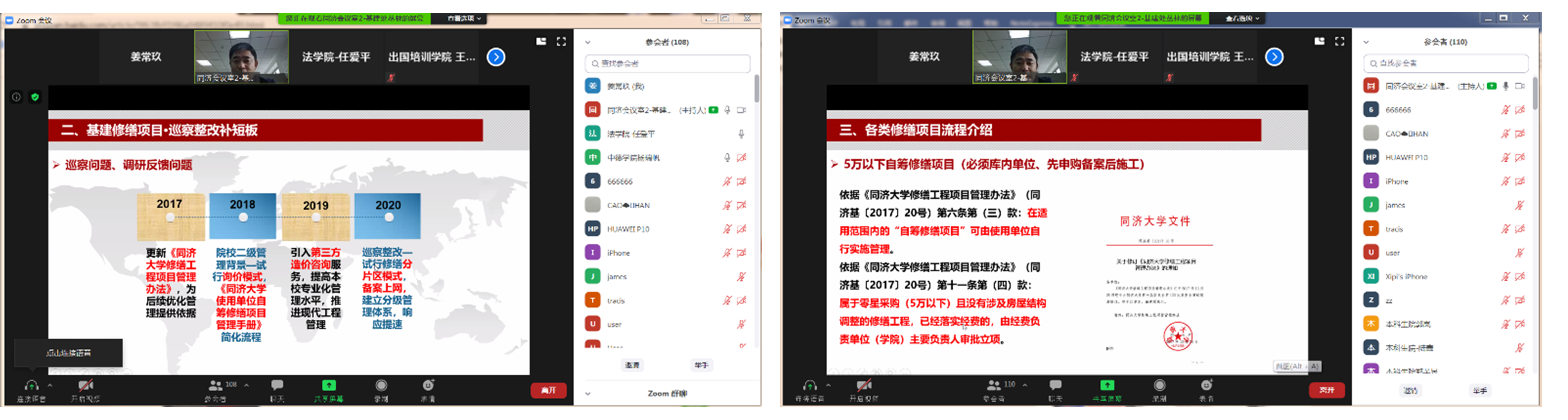 本次会议重点解读了同济大学修缮与采购相关政策,推进了管理制度的落实落地,加强了职能部门与二级单位的交流互动,助力同济大学修缮与采购工作治理水平和治理能力的提升。