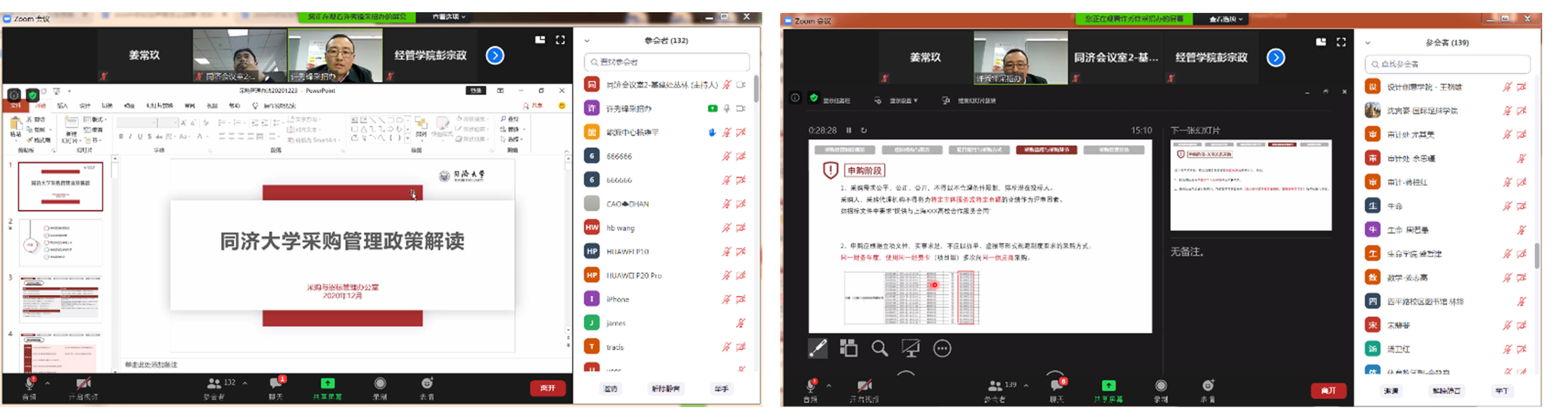 按照学校党委对各职能部门“主动出击、跨前一步”的要求,推进学校修缮与采购招标各项管理工作高效开展,12月23日(星期三)下午2:00,在zoom线上平台召开了学校修缮政策与采购政策宣贯会议,学校各二级单位分管行政负责人、各学院办公室主任、学院采购事务管理员等130余人参会。