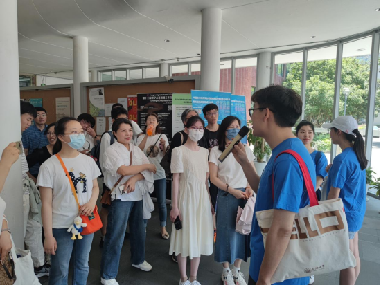 150多位来自不同年级的市北中学优秀高中学生及家长们在上午10点到达同济大学。10余位在校优秀学生代表作为志愿者带领大家登上同济A楼15层(经济与管理学院)众览同济大学全貌。志愿者们引导同学们走进校史陈列馆,了解同济大学的发展历程;介绍明成楼、文远楼等特色建筑;走进教学楼、学生宿舍、体育馆等学生们最关心的学习生活场所,感受身在同济的幸福。中午同学和家长在学苑餐厅就餐,大家对丰富可口的菜品啧啧称道。
